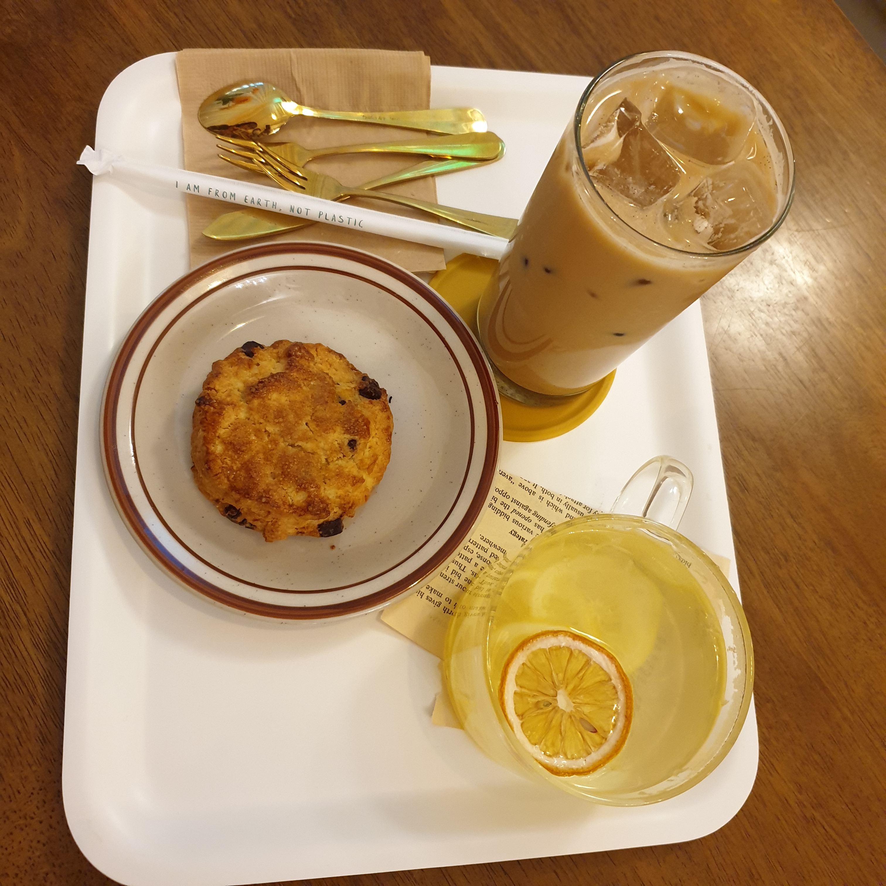 주문한 아이스 바닐라 라때 와 따듯한 레몬티 그리고 초코스콘!!