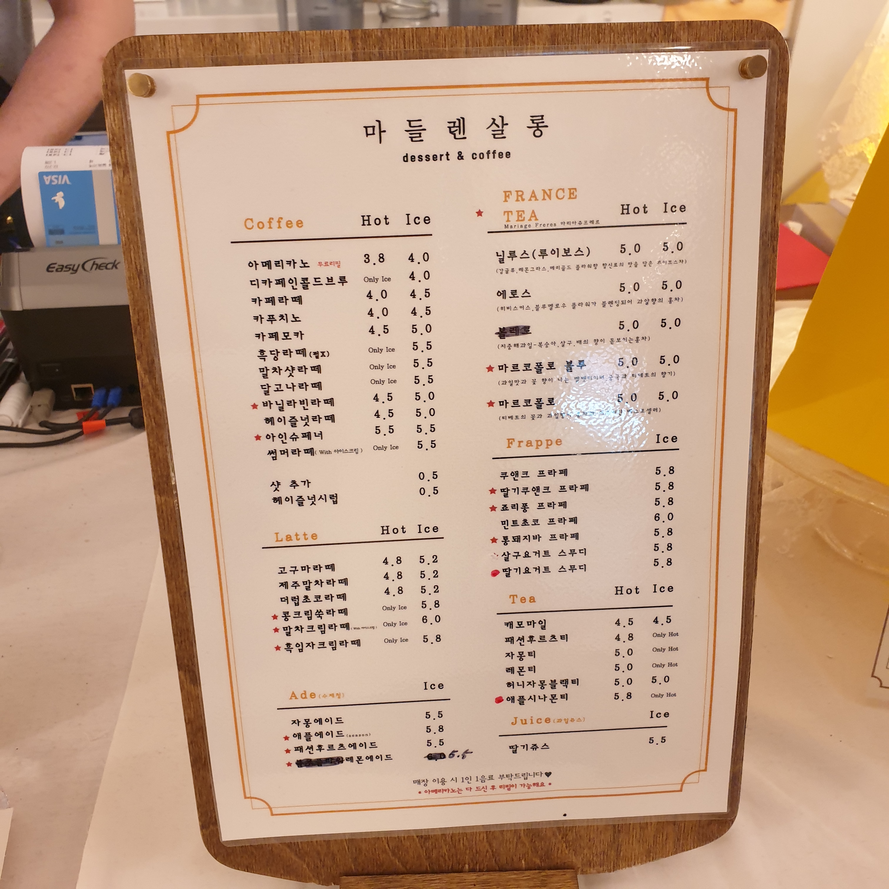 광주 신창동 수완동 마들렌 맛집 카페 '마들렌살롱' 메뉴판이에요!!